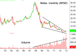 Zuerst verlor die Aktie rund 10% von $ 4,70 bis $ 4,20 auf schweren Handelsvolumen bei Nokia veröffentlicht seine 2012 Ergebnisse. Obwohl die berichteten Zahlen waren stark in allen Geschäftsfeldern, hatte die Erwartungen sogar noch höher. Darüber hinaus Nokia Investoren, indem die Dividende für das erste Mal in der Geschichte des Unternehmens enttäuscht. Zusätzlich gab es ein vorsichtiger Ausblick auf das erste Quartal des Jahres 2013. Nur eine Woche nach Nokias Jahr 2012 Zahlen veröffentlicht wurden, war es der große Tag seines Konkurrenten RIM-now BlackBerry (BBRY). Während BlackBerry wurde um etwa 30% innerhalb der ersten Tage nach ihrer BB10 Präsentation gesendet, rutschte Nokia-Aktie weiterhin als gut, bis auf 4,10 $. Nicht genug für Nokia-Investoren am Ende der vergangenen Woche neue Gerüchte über die indischen Steuerbehörden Affäre kam auf und zog die Aktie wieder unter die psychologische 4 $-Ebene bis 3,80 $.